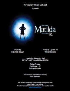 Matilda Tickets are now on sale for our production of Matilda on 25th, 26th & 27th June at 7:30pm in our Assembly Hall. Come and be entertained by our amazing cast and crew in their dynamic, fresh and exciting musical production of Matilda! Tickets available at the school office – £7 full price, £4 concessions.