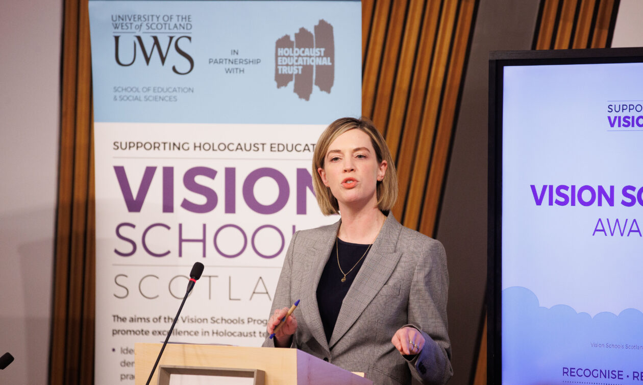 Cab Sec 2 March 6, 2026 by P. Murray ← Previous Image Next Image → EDINBURGH, SCOTLAND – FEBRUARY 26: A speaker presents during the 2026 Vision Schools Scotland Awards Ceremony at the Scottish Parliament Building, on February 26, 2026, in Edinburgh, Scotland. (Photo by Alan Harvey / SNS Group)