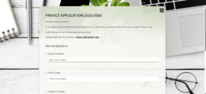 Prefects Interested in being a Prefect in 2025-2026? Complete the Prefect Application Form 2025-2026. Prefect Application 2025-2026 Share this: Click to share on X (Opens in new window) X Click to share on Facebook (Opens in new window) Facebook