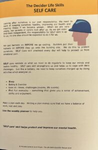 Self care – Is all about looking after yourself so you can deal with the issues you face.