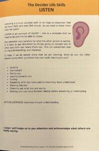 The Decider Life Skills are proactive mental health skills that are designed to help us all to be more resilient, resourceful, responsible, robust, and respectful. The Decider Life Skills aim to improve emotional intelligence and help our brains develop more positive habits. They provide the skills to help us monitor and manage our mental health.
