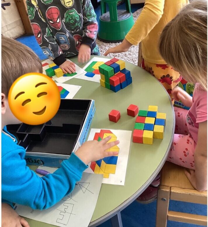 Today a group of children have been exploring shapes through games and puzzles. The group of children worked together to crest a dinosaur jigsaw and turned the pieces to fit if required. 🧩