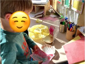 Today an individual child wanted to have an ID badge like the teachers.  They used a card to write on their name.  “I need a picture like yours ”.  They then drew a picture to complete their badge and with help we stuck it on to a spare ID cord. 🪪