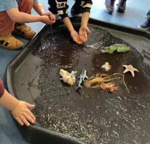 Continuing the interest of animals, the children requested to research animals trays. The children asked to do a zoo one “we haven’t done that before” and wanted to try something new. We worked together to collect resources from the nursery and took care of them by watching our spacial awareness to not drop them. The children discussed the importance of sharing and said “we all need a turn.” “Yeah it’s fair if we all have one each.” The children demonstrated good understanding of sharing. While putting the resources together the children started talking about their personal experiences and times they have gone to the zoo. They listened carefully to each other and waited their turn to reply. “The zoo makes me happy.” “It makes me excited.” “Me too.” “I went to the zoo for my birthday before.” “I went two times for my birthday.” “My mummy took me in the car to the zoo but I know you can get a bus.” The children discussed a range of feelings about how the zoo made them feel. They also discussed zookeepers and what zoo keepers do. “They give the animals food.””Like we fed the birds yesterday.” “They keep them healthy.” “They have to not walk by themselves.” “Do you know animals are living things and that’s why we have to feed them.” The children were able to discuss that a zookeeper looks after the animals which led to them discussing people who care for them. “My mummy looks after me and daddy.” “Sometimes my granny and grandad look after me.” While exploring the tray they used the animals to make footprints in the different materials. They continued role playing and discussed size, amount and lengths of the animals. “Look three sea lions.” “This one is bigger and that one is smaller.” “Yeah that one is longer too.” “We need one more sea lion to make four like the hippos.” “Do you know I had to pay to visit the zoo my mummy used pennies.” “Me too my granny used her card to pay.” The children discovered different ways we can pay for services. They continued to talk about different animals and times you might see them. “You never see sharks they are under the water.” “You see bats when it’s dark at night time and foxes too.” “I seen a bird today when it was morning.” After some of the children had finished with the tray they understood that they had to wash their hands. “I have to wash my hands with soap and water now because they are all muddy.” The children independently washed their hands after their play experience. 🐘🦒