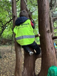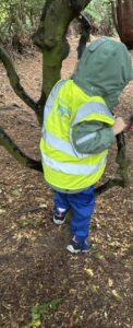 Today in the forest a group of children have been risk assessing outside as they have used their gross motor skills to climb trees. They discussed how their tummy feels when they get too high.