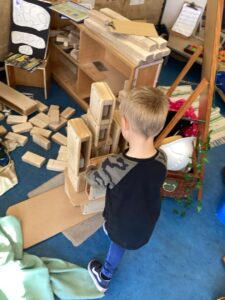 Throughout the week we have observed so much  child initiated learning  occurring throughout the nursery. We’ve observed some children using the blocks to create very detailed buildings to some developing their shape recognition and matching skills when tidying up the blocks.