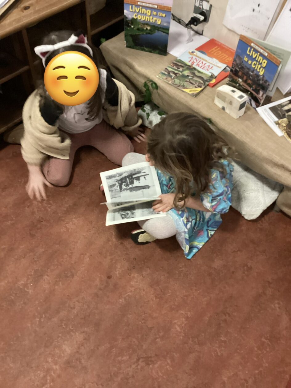 Today inside a group of children enjoyed some time at the learning wall. They used the books to explore pictures. The identified houses that looked similar to their from the story and discussed this with each other. 📖