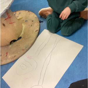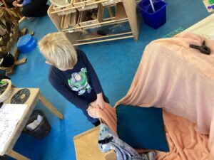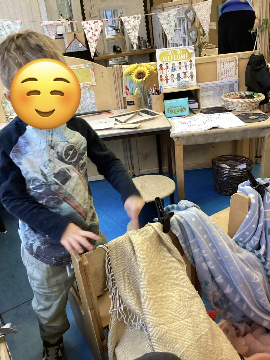 Today outside a group of children worked alongside with the adult to share thoughts, ideas on creating a den using a range of sticks, material and crates. They confidently used words to describe what was working and not working, using skills to make changes. ⛺️ “It’s a man”. Today inside individual children have been using their fine motor skills to draw a picture, laying down in the art area. They used different shapes and line to create a chosen picture of a man. 🧍♂️ This afternoon outside individual children explored the sound area using different loose parts to make sounds. They showed a good understanding when the adult asked if they could go faster, slower, gentle hard using this knowledge to create a beat. 🎶