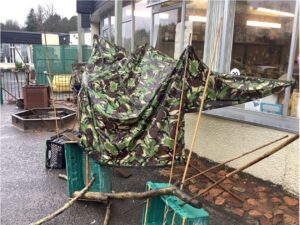 Today inside a group of children worked together to create a holiday house using the cosy den. They shared ideas and solutions with each other to make their holiday home sturdy. They used the clips to place the blankets in place so they could role play holiday houses together. 🏘️