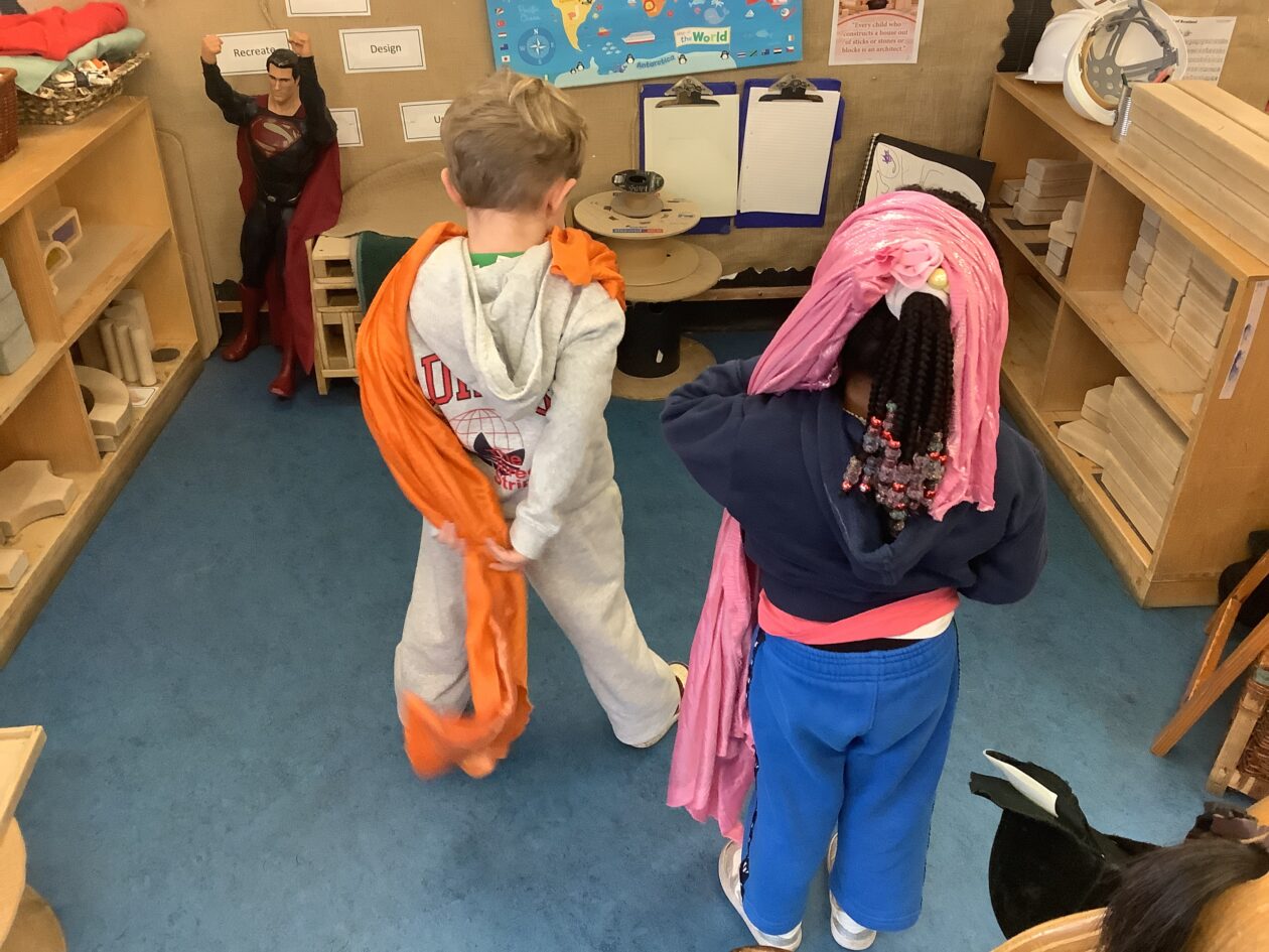 Today a group of children enjoyed dressing us using the Lycra as capes. We’re superhero’s. “My superpower is dancing” “my superpower is flying.” 🦸♀️