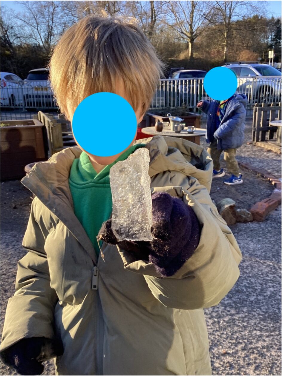 Today outside a group of children have been exploring the ice and discussed how it looks a bit like a crystal .🔮