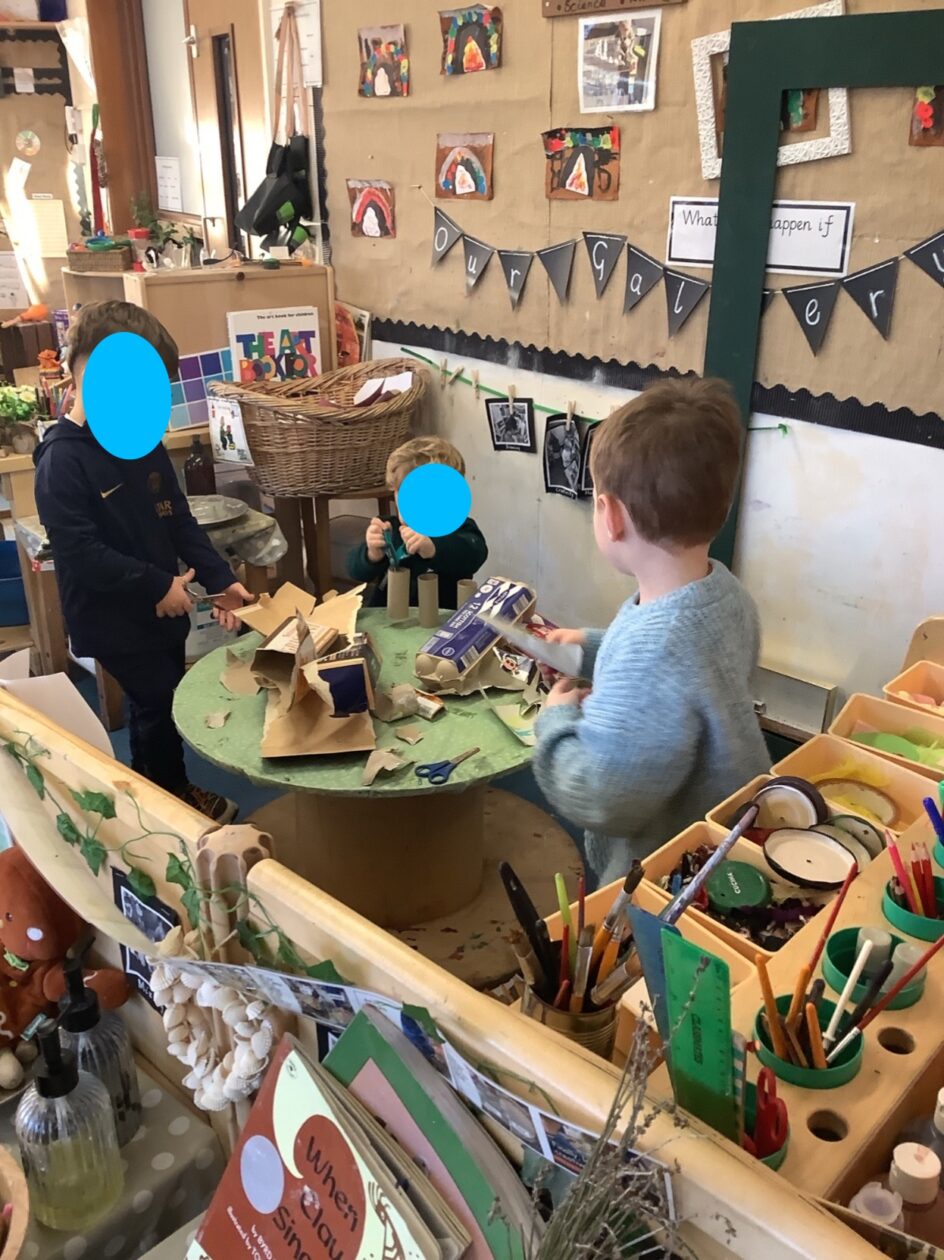 Today inside at the art area a group of children have been exploring different tools and materials to create models and pictures. 🎨🖌️