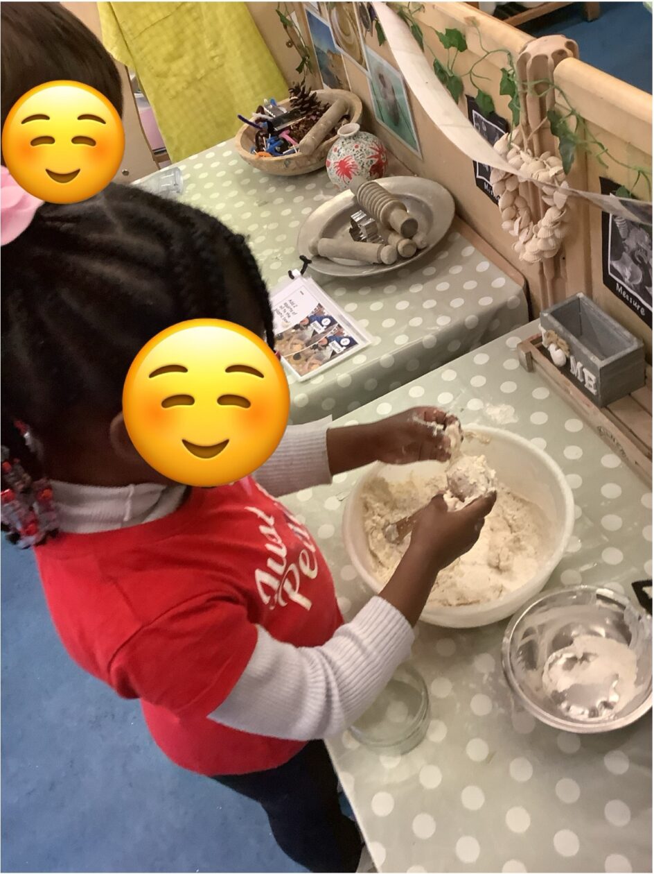 Today inside a child independently created some play dough and could discuss if they needed more water or flour to find the correct consistency. 💦
