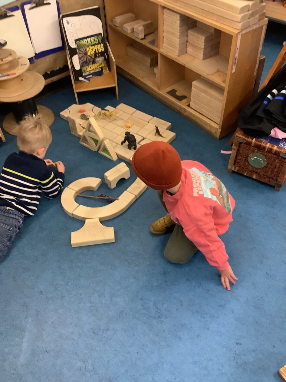 Today inside Fergus and Roddy used different sized and shaped blocks to create a model. They worked together and shared their ideas with each other. “The animals live here.” They created a zoo for the animals with lots of different animals. They discussed how a zookeeper helps the animals by feeding them. “They look after them so they don’t go wild to other animals.” “They also feed them, they feed them different things.” “Sometimes predators eat meat and if they are not predators they eat not meat, they eat leaves on trees and also grass.” 🦍