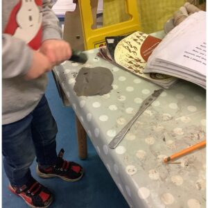 Today inside a group of enjoyed investigating with the clay. They independently used the roller and their hands and discovered the more they rolled the clay the flatter it was getting and when they used their hands it was turning into a ball. They continued to use more tools and discovered what they do. One child independently created a snowman. ☃️