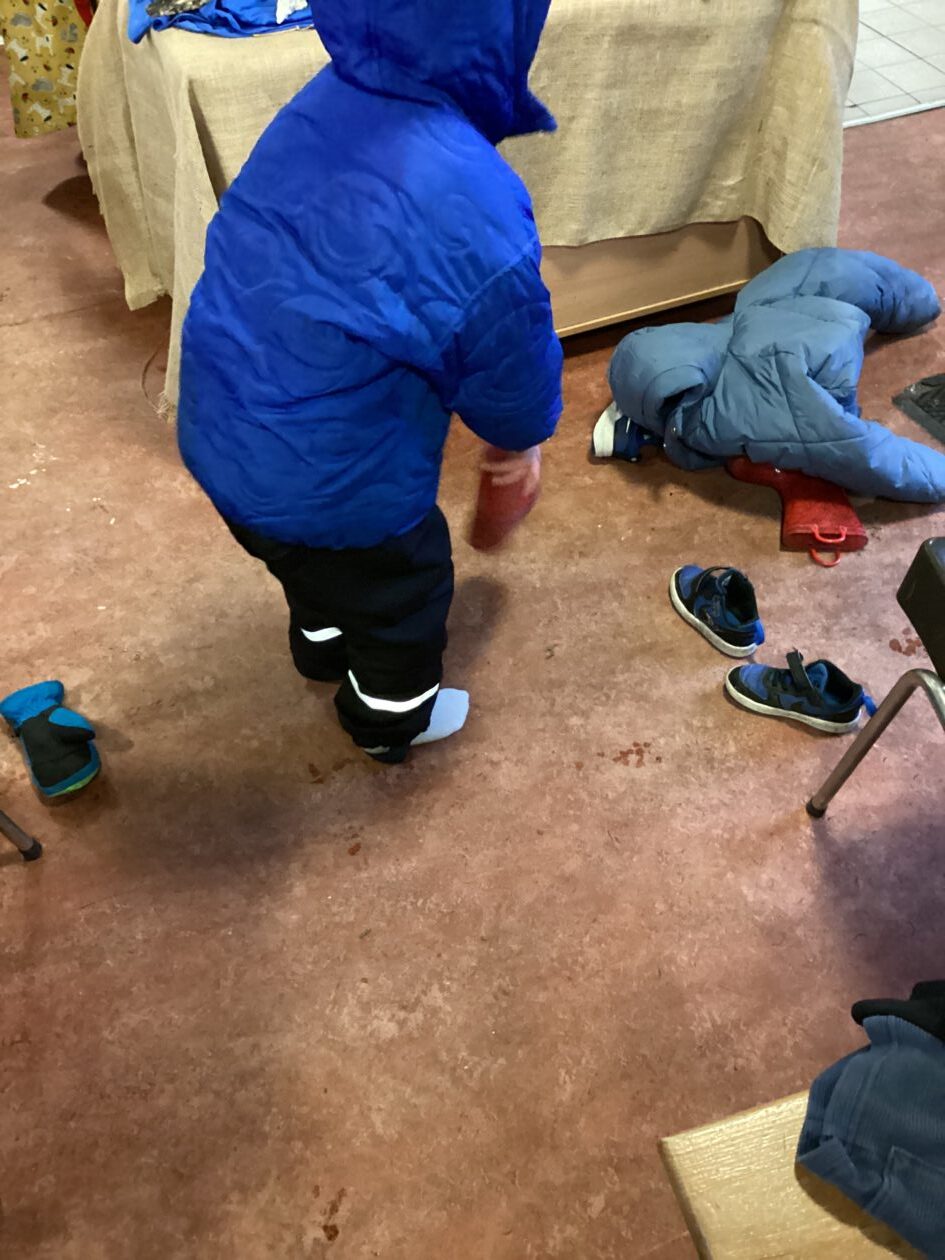 Today inside the children looked outside at noticed it was snowing 🌨️. They enthusiastically grabbed their waterproofs and jackets to go and play outside. The group of children who went outside independently got themselves ready with all their outdoor clothing and confidently asked for help putting gloves on. 🧤