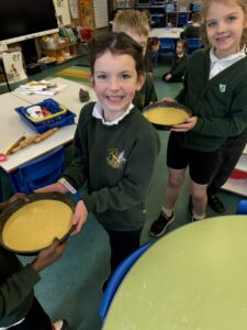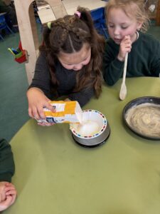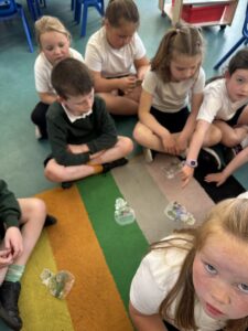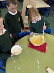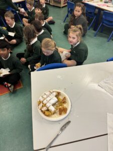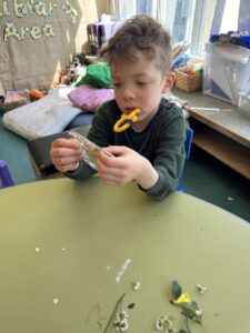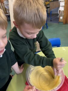 We made some bird feeders during our outdoor learning session this week which we will put on trees around the playground next week. We hope that we will be able to spot some interesting birds in our playground as a result.