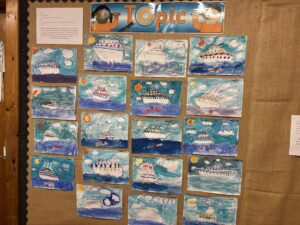 We were learning about the old ferry from Newport to Dundee. We hope you like our art work.