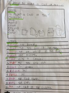 In writing we learnt how to make a cup of tea and wrote a set of instructions.