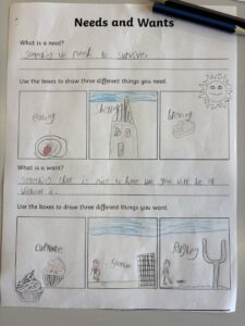 We communicated well with each other when talking about needs and wants and linking these to The Rights of a Child.