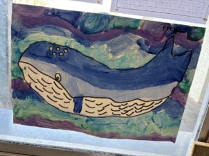 We created our own whale art work using cold colours and poster paints. We created a class art gallery and gave each other peer feedback.