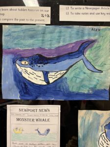 We wrote newspaper articles about the whale.