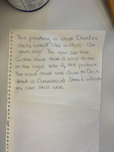 This week we have enjoyed learning more about the Dundee Jute Mills in our topic. We also learned about the old ferry to Dundee and created some wonderful wax resist art work, inspired by famous artist James Rizzi. We are enjoying responding to the children’s’ questions and interests.