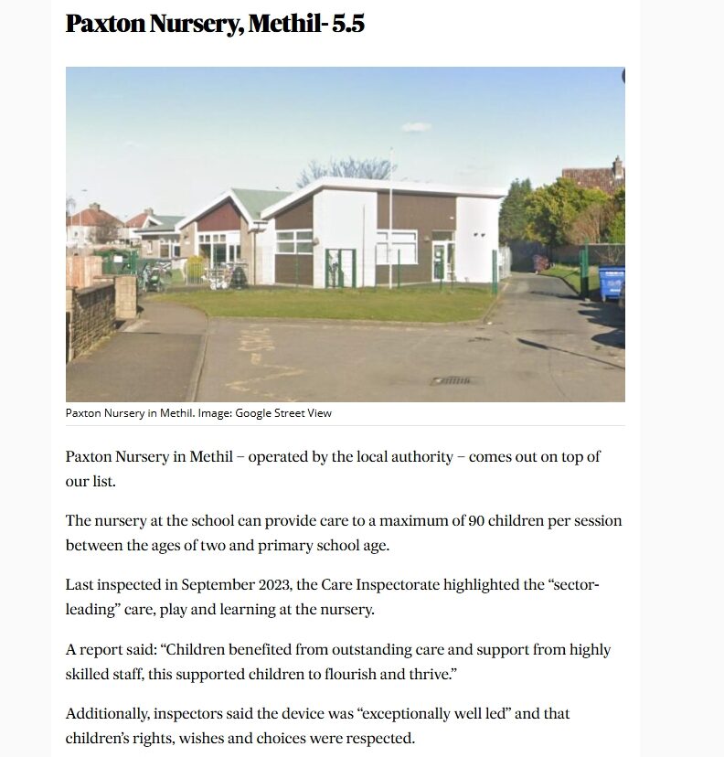 Our passionate team works hard to create a nurturing, inclusive setting where every child is supported, valued and encouraged to explore, imagine and grow. This commitment to high quality has been recognised in multiple ways. We were honoured to receive a Digital Learning Award, making us the first standalone nursery in Fife to achieve this distinction. In addition, according to data gathered by the The Courier, Paxton Nursery came out top of the list in central Fife based on recent inspection scores from the Care Inspectorate. Inspectors praised our “sector‑leading care and support” and described our leadership as “exceptionally well led”. thecourier.co.uk