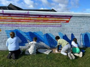 Pupils at Pittenweem have teamed up with artists Vanessa Gibson and Donna Forrester to create a mural beside our new playpark. All pupils were involved in planning the mural and work began at the start of this term The results are stunning so far!
