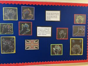 We have been learning about Aboriginal dot art. We used vibrant colours to create negative space images.