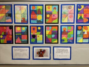 We have been learning about the American artist and poet, Etel Adnan. We used her technique of diving spaces into three areas using line, before adding bright colours to create landscapes.