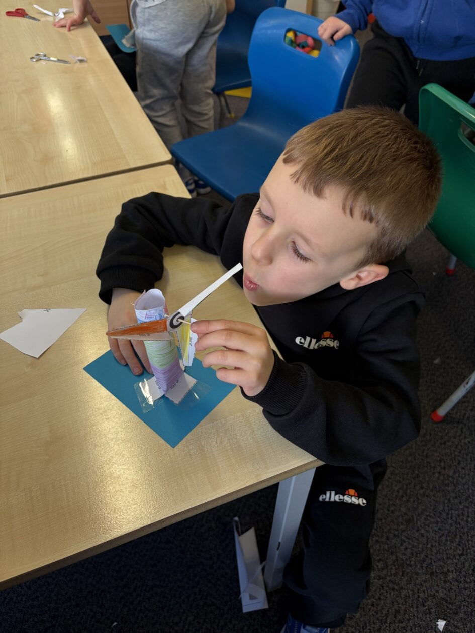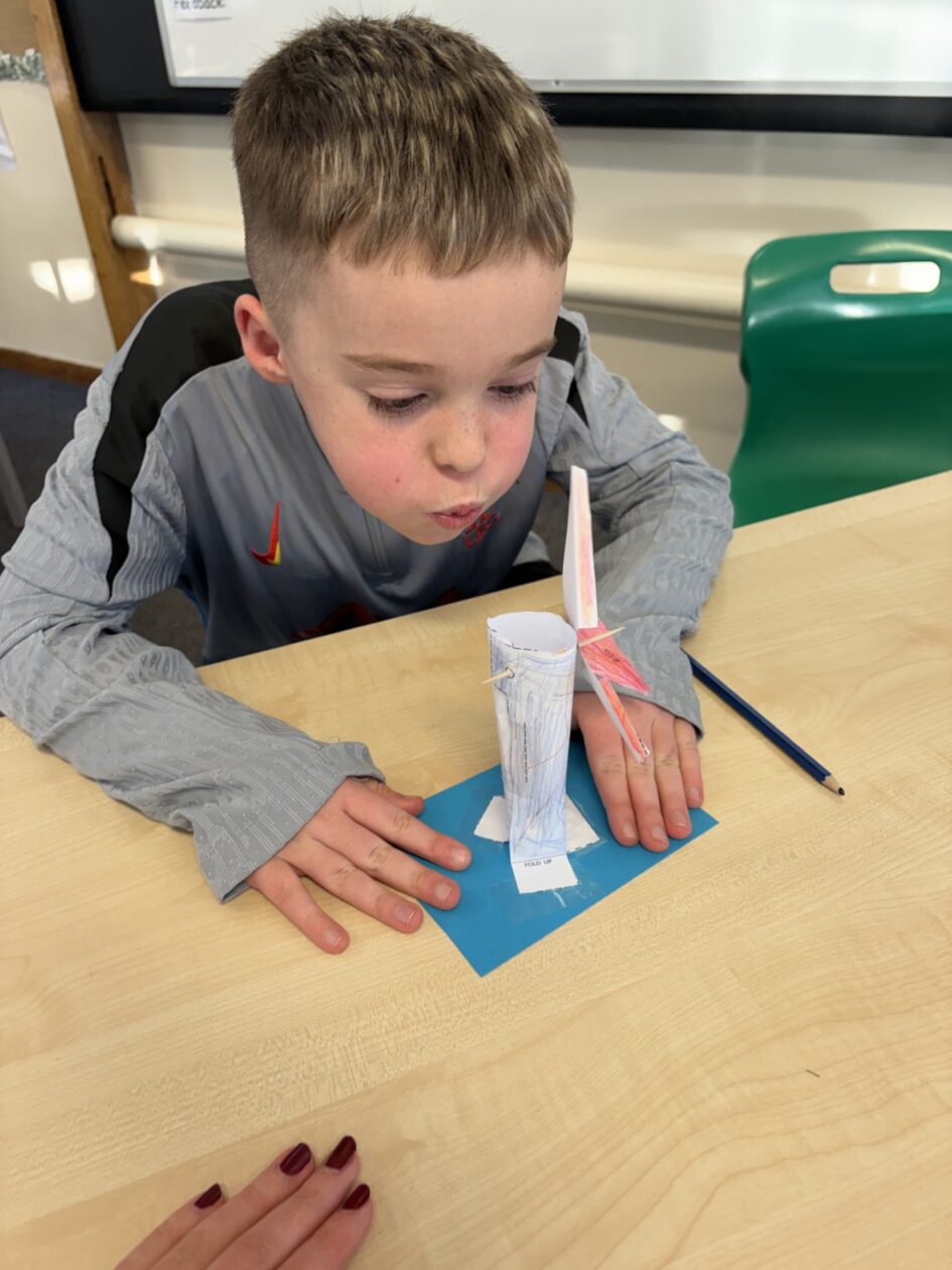 In science, we explored different forms of energy, with a focus on green energy. We became engineers by designing and building our own wind turbines, testing them to see what factors affected how well they worked.