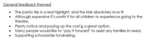 An impressive 56% of school families responded to our Christmas Panto short survey – thank you. The results were: