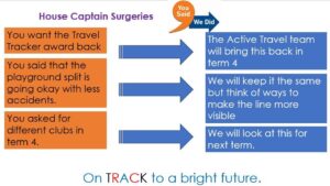 House Captain Surgeries – all classes fed back on how things are going and what they would like us to focus on next.