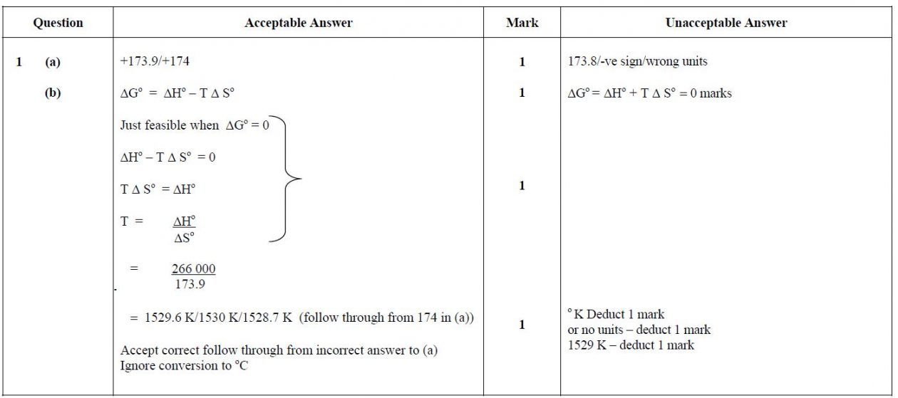 Marking Guide: 1_5B Reaction Feasibility 1. A 2. A 3. D 4. A 5. A 6. A 7. B 8. D 9. B 10. C 11. 12. 13. 14. 15. C