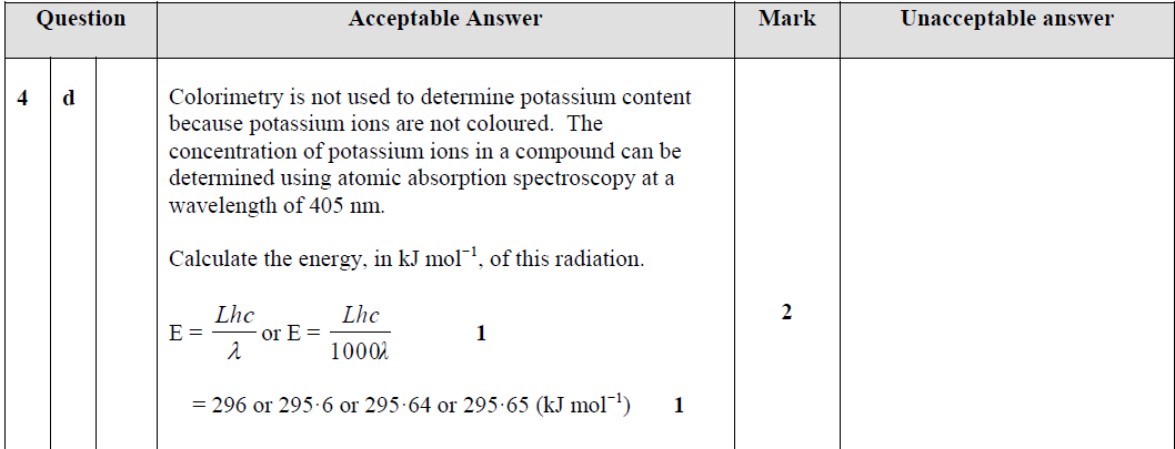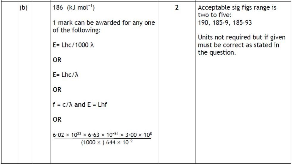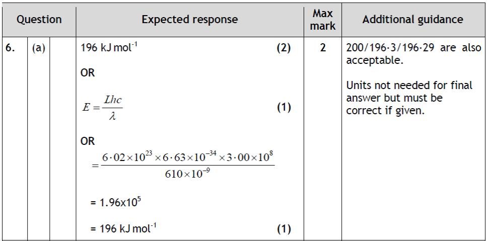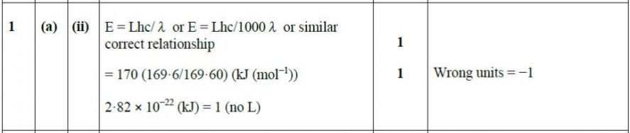 Marking Guide: 1_1B Electromagnetic Radiation & Atomic Spectra 3. 2.82 x 10-22 4. 196 5. 186 6. 296 7. 3.64 x 10-13 moles
