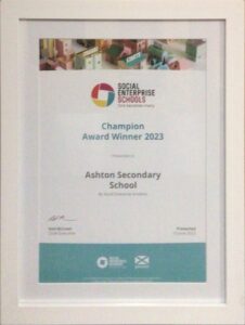 June 2022: We attended the Social Enterprise Academy Marketplace and Awards and collected the ‘Social Enterprise School Award’ following submission of evidence of our business practice.