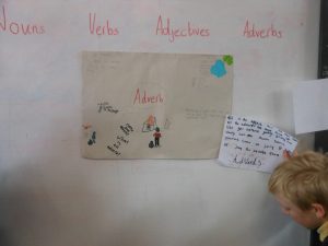 Over the past week, P7a have been looking at the differences between nouns, verbs, adjectives, and adverbs to help with our writing. We split up into different expert groups and came up with fun and creative ways to teach the rest of the class about each word type.