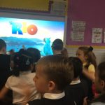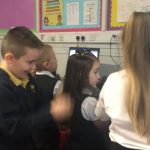 This week in P2a we have had visits from lots of teachers. Mrs McMillan came in to help is with our sentence writing. We became weather reporters and we wrote sentences about the weather for each day of the week.