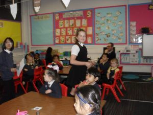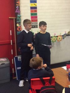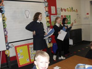 Our topic in term 1 has been Climate Change. When we heard about primary 1 making posters to tell other classes about saving energy, we knew we could help out. We put all of our new knowledge to great use by creating exciting talks for the classes so that they could understand why saving energy is so important. Our teacher choose two hard working groups who had put lots of thought into their presentation, props, audience and questions.
