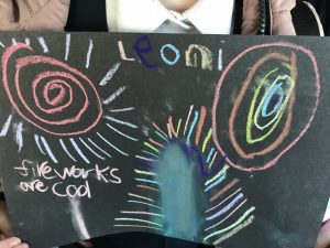 To prepare for Fireworks night, we used pastels to create a fireworks display. We enjoyed this because it was fun and very colourful.