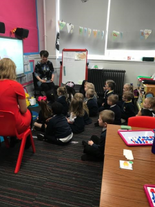 We also had a visit from Mrs Woolfries and Mrs Harris to read us a story – Room on the Broom!!