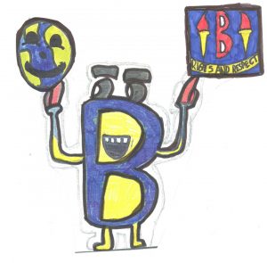 We held a competition for the children at Balornock Primary to design a Rights Respecting Mascot for our school. We had two winning entries. Our winning designs were created by Daniel Ferguson and Alisha McKnight. We have combined both of their designs to create Bal-B – our Rights Respecting Mascot. Bal-B is on display throughout our school.