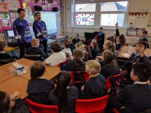 We were very lucky to get a fantastic visit from some real members of Glasgow’s professional Ice Hockey team,