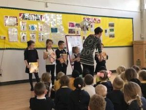 Hear, Say, Play, Write began for the Primary 1 and 2 children.  They had a fantastic time listening to the story Room on the Broom written by Julia Donaldson read by Mrs Woolfries.  All the classes enjoyed joining in with the story and listening out for the rhyming words.  They can’t wait to do some writing around the story next week.