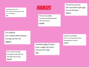 Primary 5 have also been developing their own poetry-writing skills by experimenting with different types of poems. Haikus proved to be the most successful and popular style, with pupils working hard to follow the structure while expressing their ideas clearly.