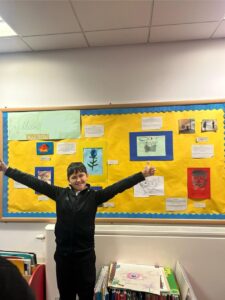 W has been working with his tutor to put together an art portfolio, which he used to create an art exhibition. Pupils from the Acorn room got a special preview! We’re really proud of the effort he’s put in and the work he’s created.