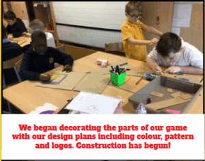 The children have been incredibly busy over the past few weeks. They started by talking together about all the materials they might need for their creations. After that, they sketched out their own game designs and shared their ideas with each other.
