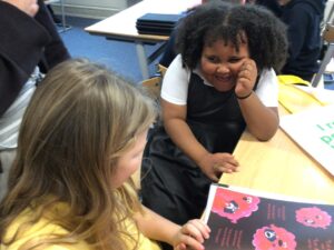 Primary 5 had a lovely surprise today when Primary 2 came for peer reading. They brought their book bags and shared their stories. Primary 5 loved hearing their buddies read!
