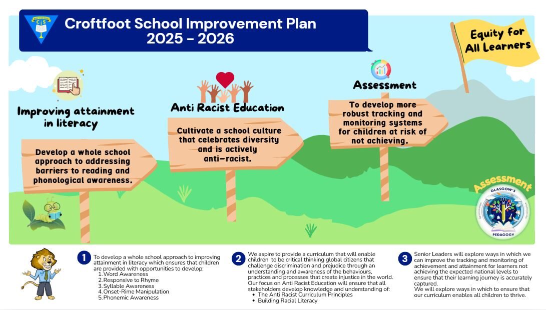 School Improvement Click here for our Standards and Quality Report 2024 2025 (published Sept 25) School Improvement Plan 2025 – 2026 School Improvement Plan 2024 – 2025 Annual Standards and Quality Report 2024 – 2025 Croftfoot SQR Sept 2024